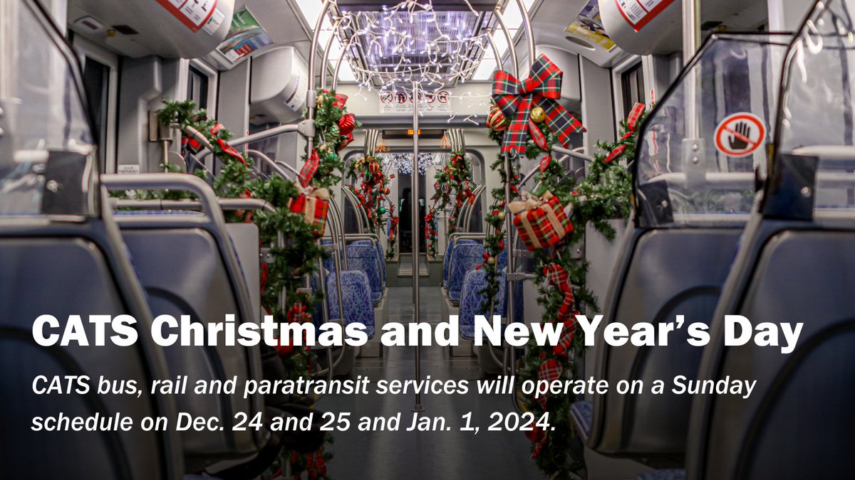 Source : twitter.comCats Bus Holiday Schedule 2024 Charlotte Area Transit System on X: “Happy Holidays, #CLT : CATS said the artist would be expected to consider designs that will be made for a moving vehicle seen primarily by transit patrons and the public. It will also be preferred that the design be . United States stock markets will be closed on Monday, Feb. 19 in honor of George Washington’s birthday, a holiday more commonly referred to as Presidents Day. Presidents Day is celebrated on the .