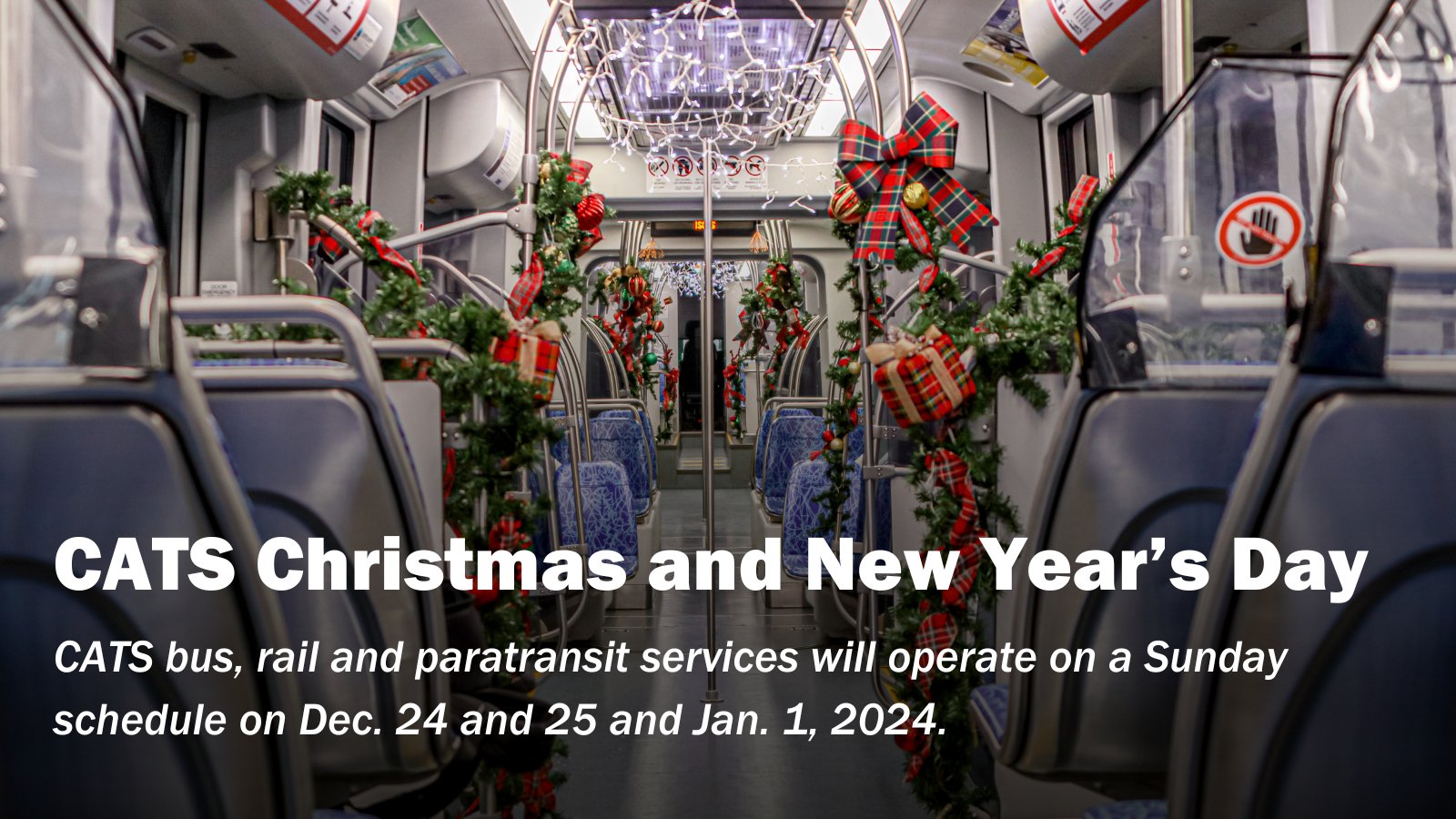 Cats Bus Holiday Schedule 2024 – It will also be preferred that the design be different but related to each side of the bus. ALSO READ: New West Charlotte Connector, new CATS routes hit the road Feb. 5 The design will be . United States stock markets will be closed on Monday, Feb. 19 in honor of George Washington’s birthday, a holiday more commonly referred to as Presidents Day. Presidents Day is celebrated on the .